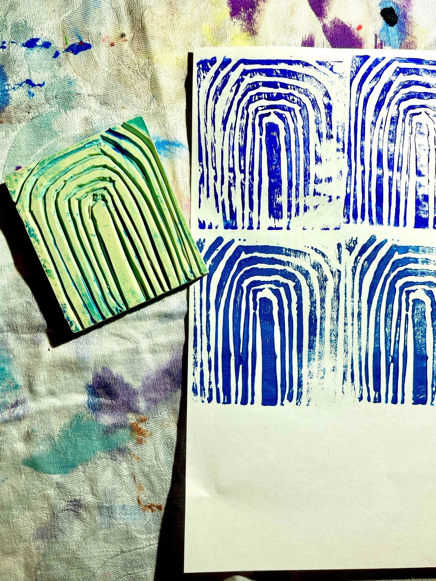 We’ll experiment with vibrant colors, layered printing, and pattern making. You can keep it minimal and graphic or go with a pattern. Your stamp can be as unique as your handwriting.