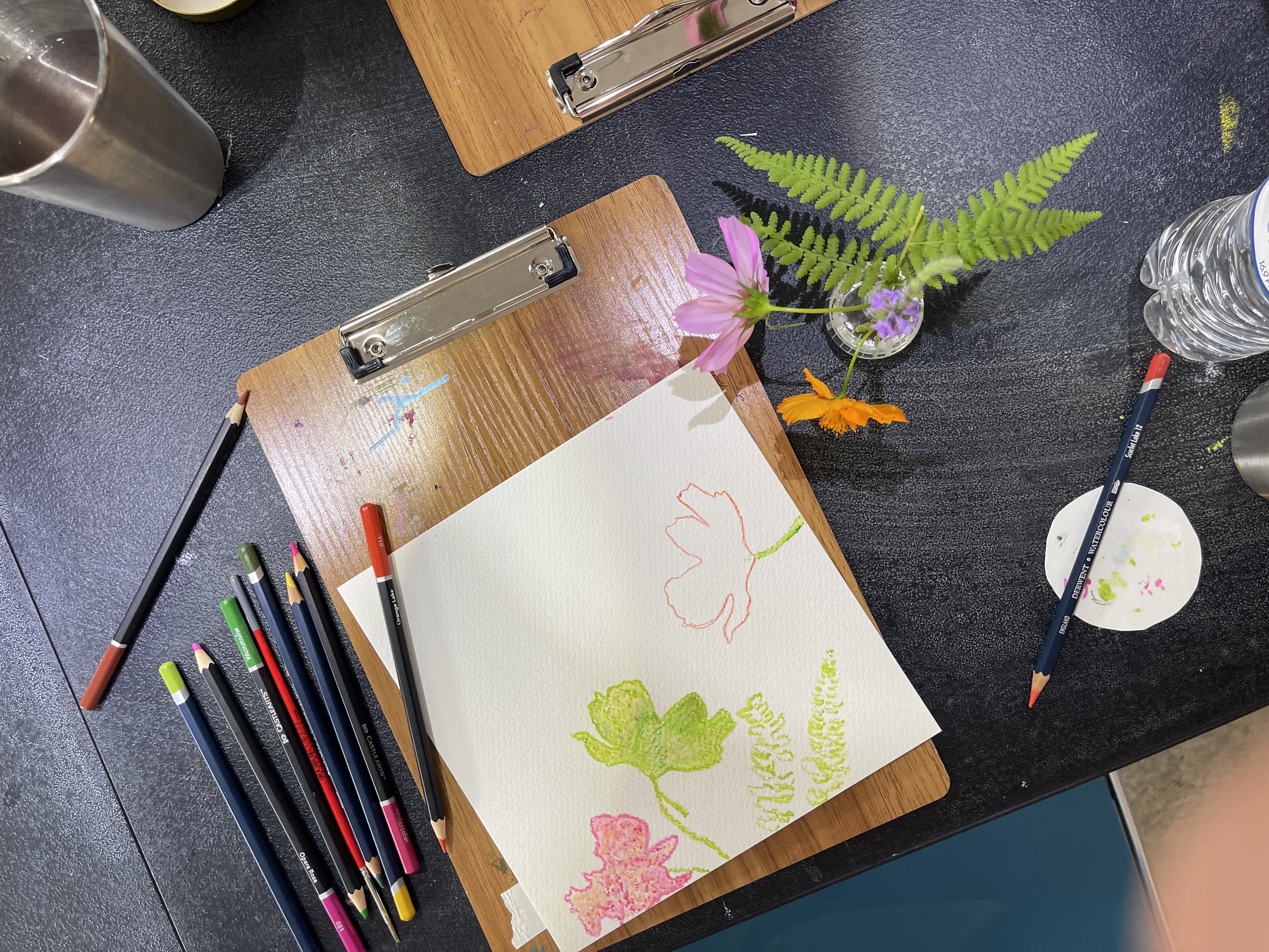 - Art Process (30–35 min): Creative response to the weekly prompt using suggested materials
