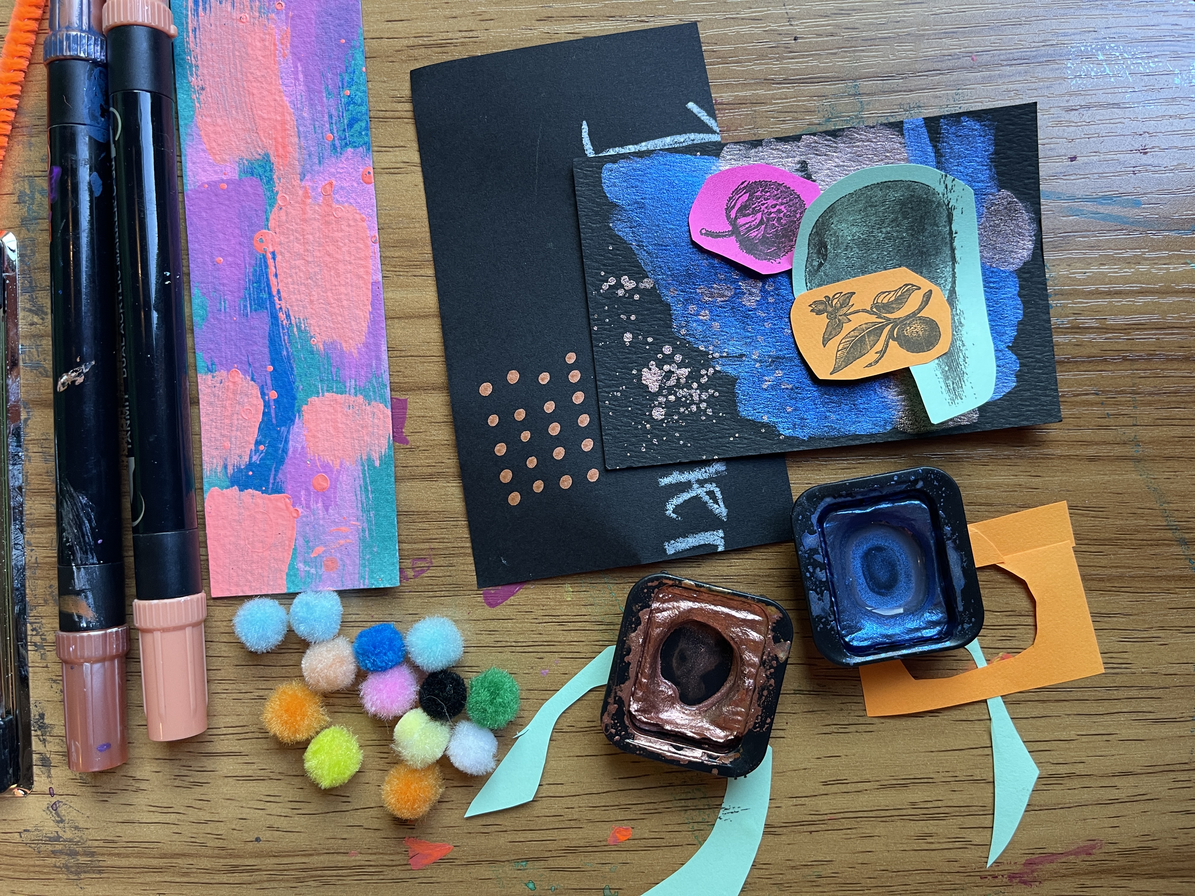 - If you have an old painting you would like to re-work - bring them along. I love painting over old paintings and giving them new life. We will be doing collage in this class!